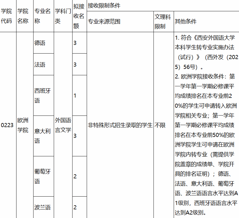 转出学生需符合《西安外国语大学本科学生转专业实施办法(试行)》(西外发(2025)56号)的转出条件。