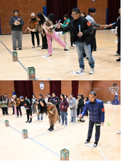 趣味投壶项目中,箭矢入壶的清脆声响里,传统游戏的趣味与团队荣誉感相融,入壶总箭数成为实力的注脚;